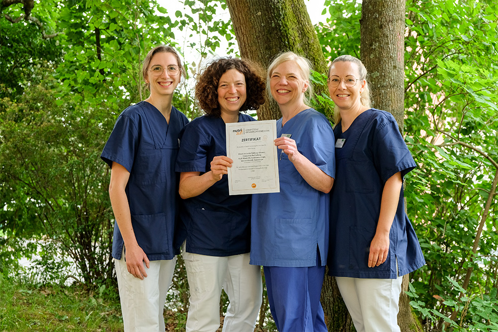 Seit April 2025 sind wir als „Ernährungsmedizinische Schwerpunktabteilung“ bei NutriZert zertifiziert. Dieses Zertifikat steht für höchste Qualitätsstandards in der ernährungsmedizinischen Versorgung und Therapie.